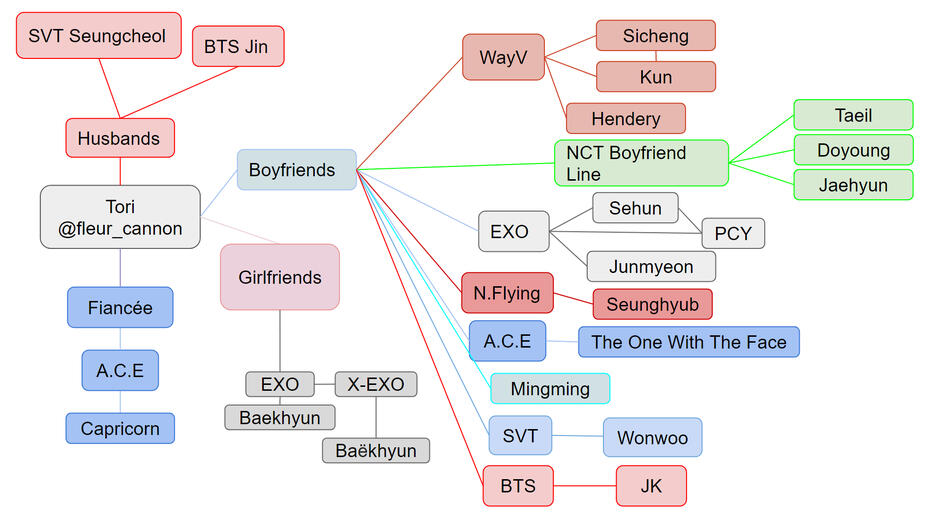 ** ult groups **WayV: Kun, Yangyang, SichengNCT 127: Taeyong, DoyoungSEVENTEEN: Seungcheol, WonwooEXO: Chanyeol, Sehun, Junmyeon💘BTS: Jungkook, BTS JinSHINee: SHINee KeyNCT DREAM: JenoDay 6: JaeRed Velvet: IreneTwice: Nayeon